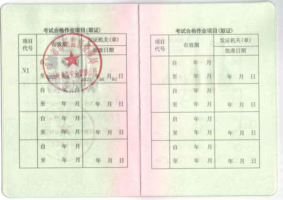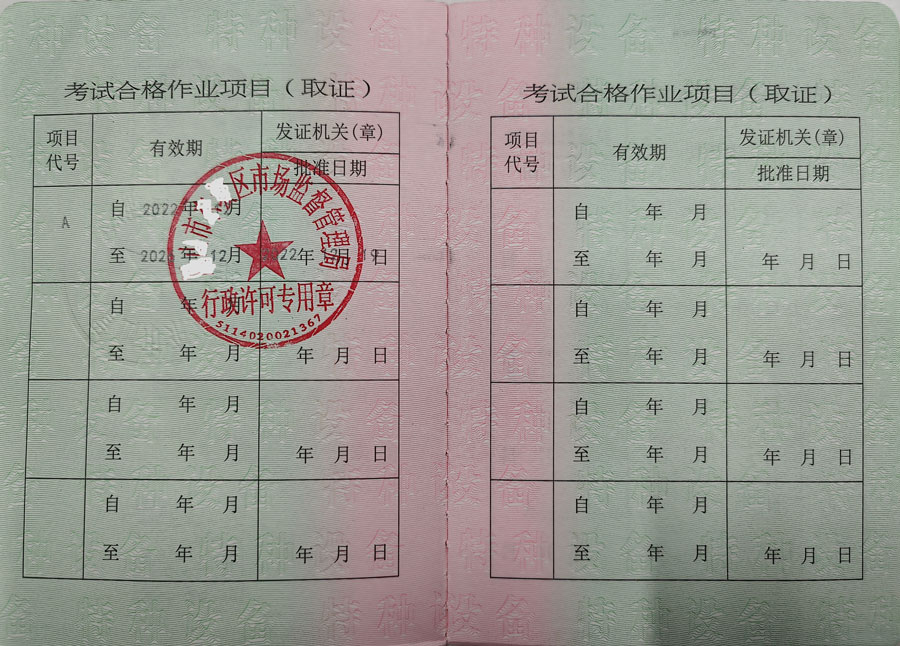 特種安全設(shè)備管理A,(電梯管理,鍋爐壓力容器管道管理,起重機(jī)械管理,場(chǎng)(廠)內(nèi)專用機(jī)動(dòng)車輛管理,)起重機(jī)指揮Q1,起重司機(jī)(限門座式起重機(jī))Q2,起重司機(jī)(限橋式起重機(jī))Q2,起重司機(jī)(限門式起重機(jī))Q2,起重司機(jī)(限纜索式起重機(jī))Q2,起重司機(jī)(限塔式起重機(jī))Q2,起重司機(jī)(限流動(dòng)式起重機(jī))Q2,起重司機(jī)(限升降機(jī))Q2,叉車司機(jī)N1,觀光和觀光列出司機(jī)N2,電梯維修T,鍋爐壓力容器壓力管道管理,電梯管理,起重機(jī)械管理,場(chǎng)(廠)內(nèi)專用機(jī)動(dòng)車輛管理,工業(yè)鍋爐司爐,電站鍋爐司爐,鍋爐水處理,快開門式壓力容器操作,移動(dòng)式壓力容器充裝,氣瓶充裝,金屬焊接操作(壓力焊PE焊),非金屬焊接操作(壓力容器焊),食品檢驗(yàn)員,化學(xué)檢驗(yàn)員,農(nóng)產(chǎn)品檢驗(yàn)員(4年一審,需要到期前3個(gè)月進(jìn)行)